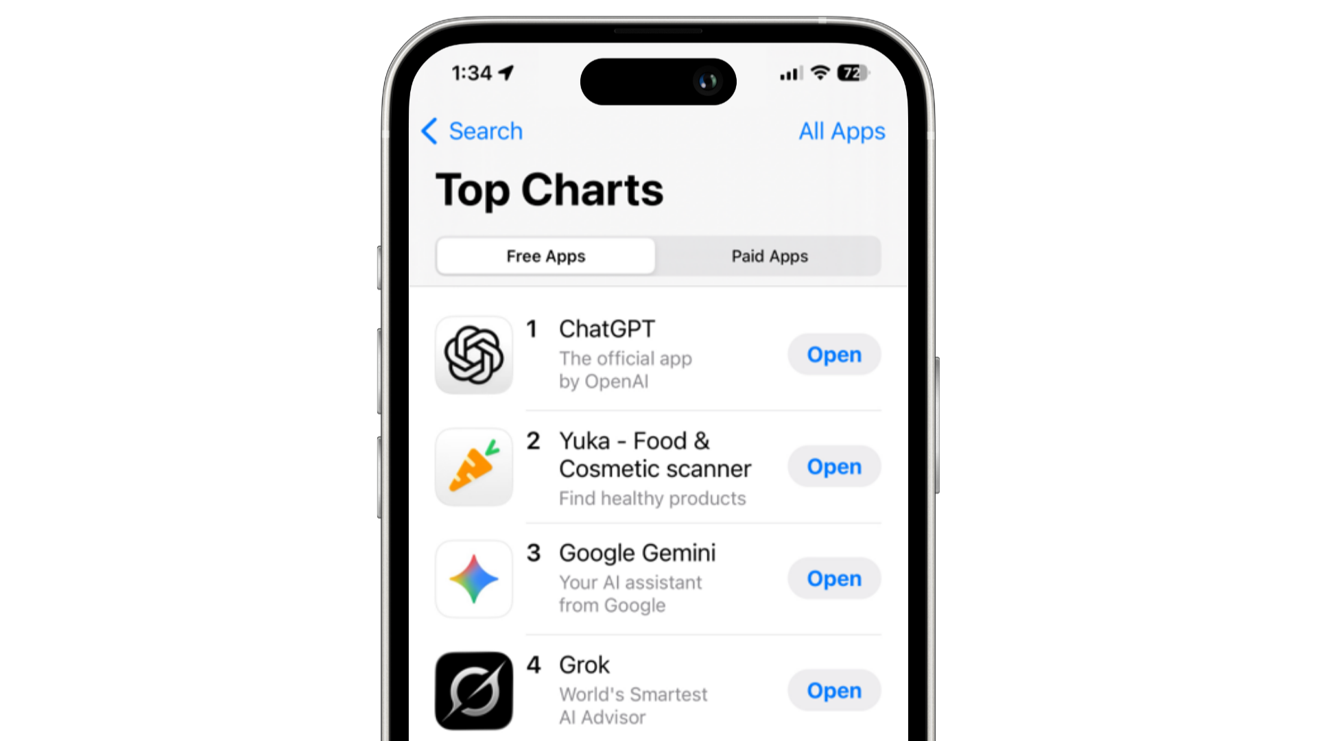If you scan the Top Charts today, you'll see apps by OpenAI, xAI, Meta, and Microsoft.